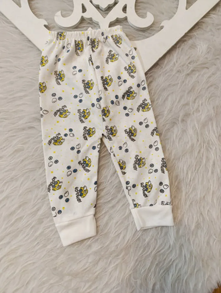 سیسمونی ارزان شلوار نوزاد لباس تیکه ای نوزادی سایز ۱ تا ۶ طرح ماشین پرنده رنگ سفید