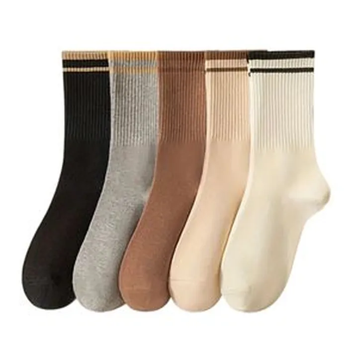 جوراب ساق بلند زنانه مدل اسپرت خط دار بسته 5 عددی