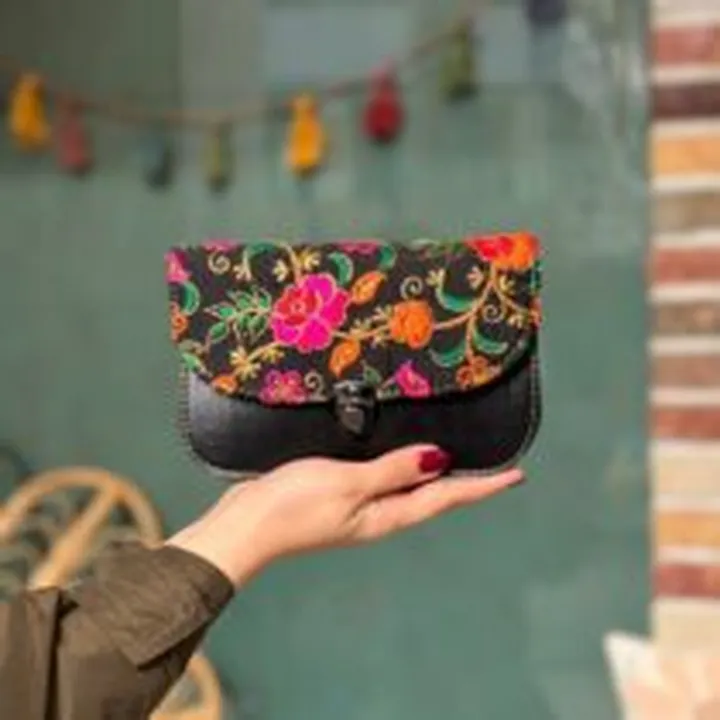 کیف سوزندوزی نارگل گلدار صورتی نارنجی