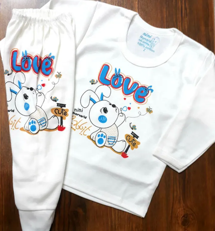 بلوز و شلوار نوزادی سایز ۱ تا ۳ پنبه اعلا طرح لاو