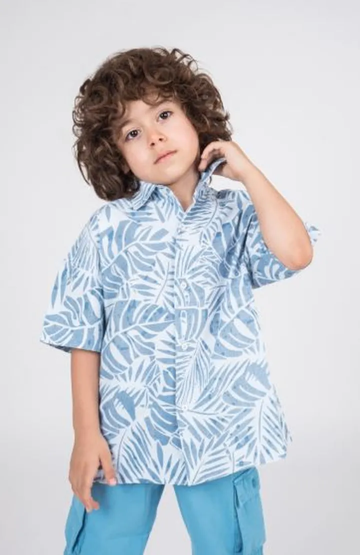 شومیز لینن اسلپ آستین کوتاه تمام چاپ