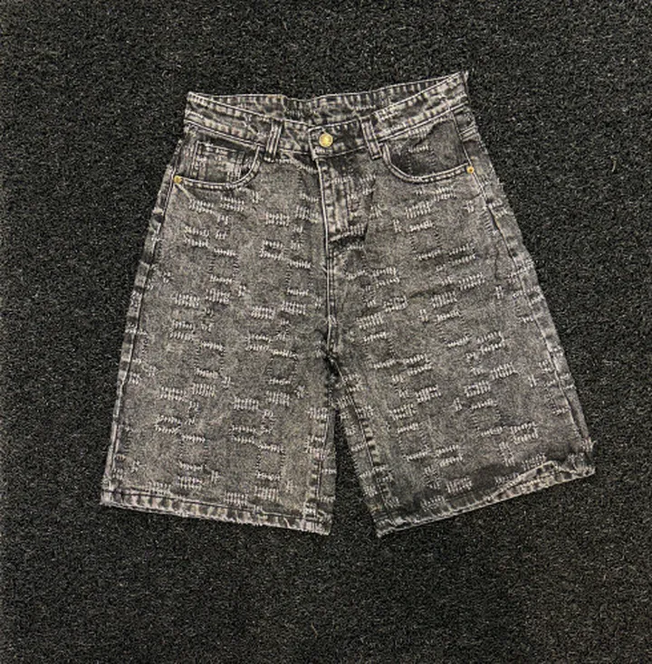 شلوارک دنیم کیفیت VIP کاستوم شده با طرح منحصر به فرد پترنهای انتزاعی کد 7557